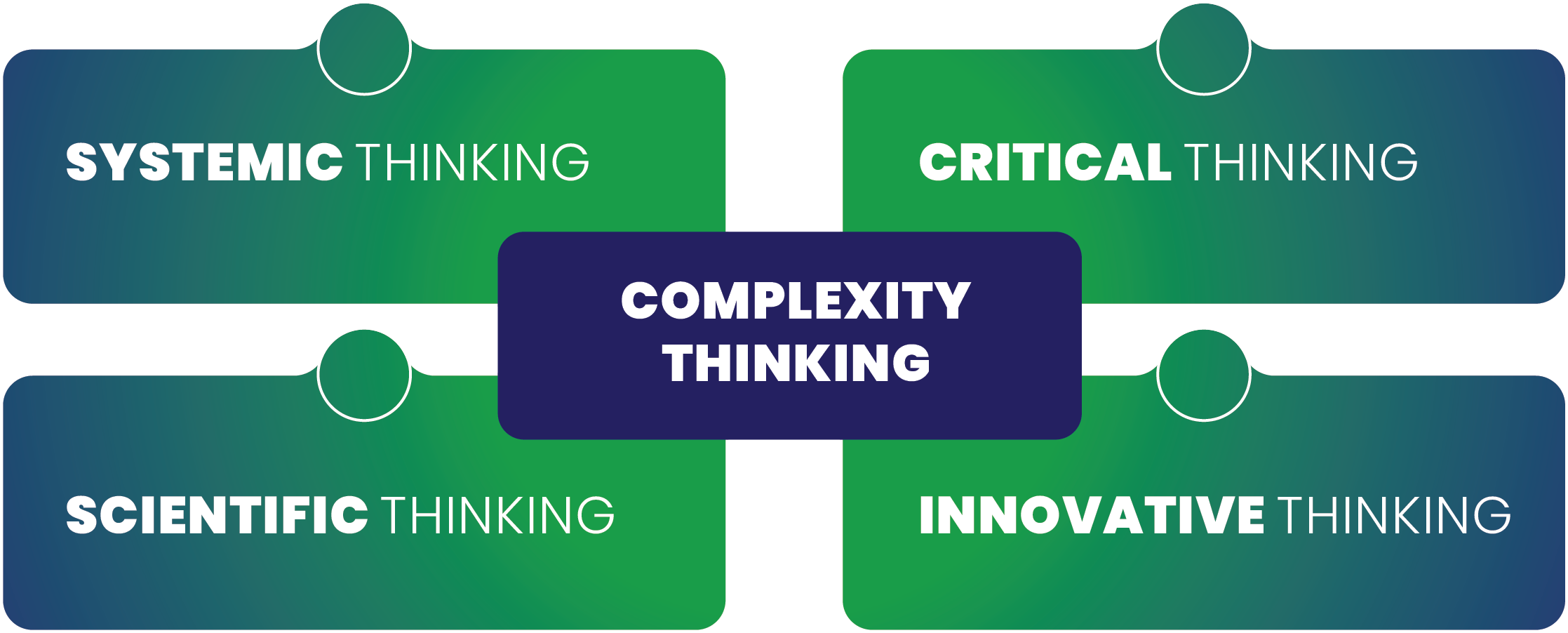 - Use “complexity thinking” to look deeply into contexts and apply innovative approaches,